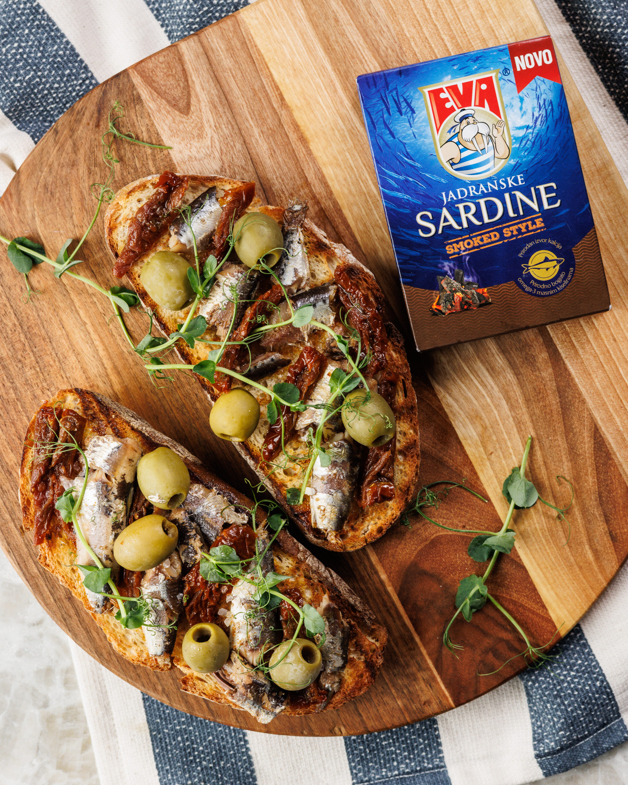 Eva sardine bogate su omega-3 masnim kiselinama, vitaminima i mineralima, savršene za sve koji cijene zdrave i ukusne obroke. No najveća prednost Eva sardina jest upravo ta što dolazi iz Jadranskog mora. Ribari ih ulove u dijelovima Jadrana koji ima najbolje uvjete za rast ove ribe, odnosno, tamo gdje je temperatura 9°C, a salinitet 38,3 promila.